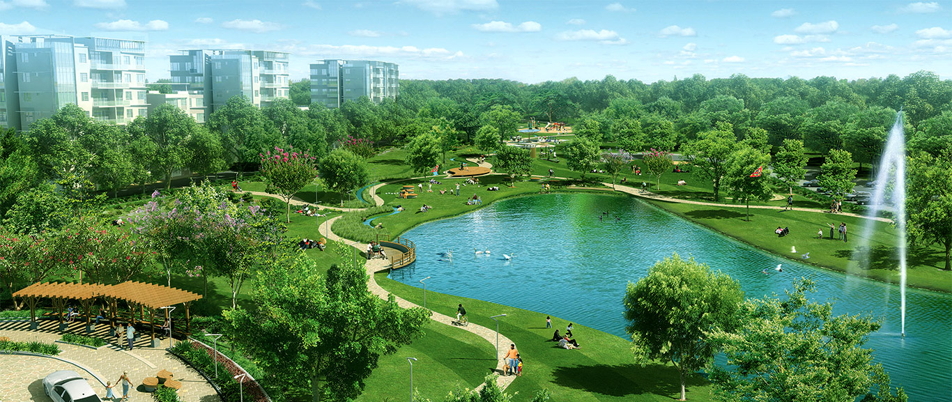 Không gian sống tại đây được chú trọng phát triển theo hướng xanh và bền vững. Các công viên rộng lớn, hồ cảnh quan và đường dạo bộ tạo nên môi trường trong lành, giúp cư dân cân bằng giữa nhịp sống đô thị và thiên nhiên. Đây là yếu tố quan trọng góp phần nâng cao chất lượng sống và sức khỏe lâu dài.
